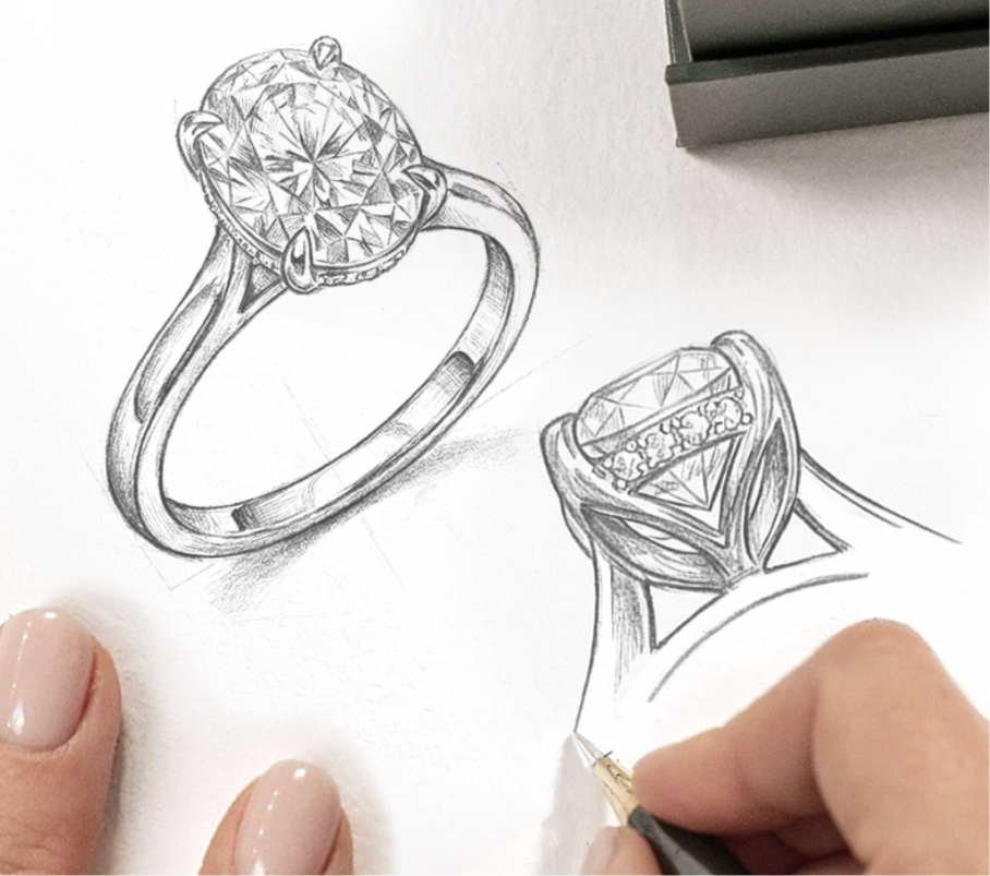 Working closely with your dedicated designer, this is your chance to share your thoughts, tastes and inspirations. Our designer will hand sketch some ideas just in from of you and explain in details how the future piece of jewellery will lok like